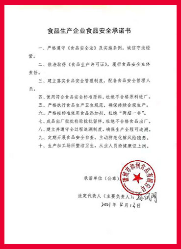 和潤食品鄭重承諾